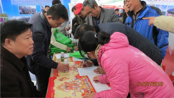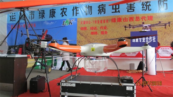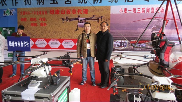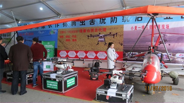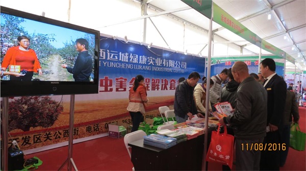 山西運(yùn)城綠康實(shí)業(yè)有限公司對(duì)這次農(nóng)展會(huì)非常重視,重點(diǎn)打造了兩大參展主題:一是在農(nóng)展館以北300米左右的農(nóng)資展廳設(shè)立了一個(gè)展位,主要用于綠康農(nóng)作物病蟲(chóng)害統(tǒng)防統(tǒng)治合作社展示飛防機(jī)械:美國(guó)原裝進(jìn)口安塔瑞斯MA-34 R582XB農(nóng)藥噴酒飛機(jī)2架,同時(shí)還配備各種地面防治機(jī)械設(shè)備多臺(tái),大疆MG-1農(nóng)藥植保機(jī)三臺(tái),工作人員向前來(lái)咨詢的群眾發(fā)放相關(guān)宣傳資料,熱情詳細(xì)介紹并現(xiàn)場(chǎng)進(jìn)行試飛表演,不少群眾看完以后怦然心動(dòng),紛紛向工作人員了解價(jià)格及使用方法。二是在相鄰的農(nóng)資展館設(shè)立了一個(gè)大展臺(tái),展臺(tái)上下,綠康的各種農(nóng)藥、資料擺放整齊,工作人員在現(xiàn)場(chǎng)向果農(nóng)發(fā)放資料袋,內(nèi)裝有相關(guān)農(nóng)藥的性能、用途等宣傳資料,附贈(zèng)有一張財(cái)神爺?shù)哪戤?。直營(yíng)部的劉杰一經(jīng)理耐心的手把手教給果農(nóng)掃描年畫下方的二維碼,并接受果農(nóng)現(xiàn)場(chǎng)技術(shù)咨詢,綠康工作人員誠(chéng)懇的態(tài)度和周到的服務(wù)受到參展果農(nóng)的一致好評(píng)。