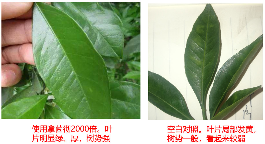 綜合以上實(shí)踐應(yīng)用和試驗(yàn)得出結(jié)論:全剩余期使用2-3次凱露森葉片、果面不會(huì)受到脂點(diǎn)黃斑病和砂皮病的侵染,***終達(dá)到葉片濃綠、果面靚麗的效果,而且能夠提高樹勢(shì)。
